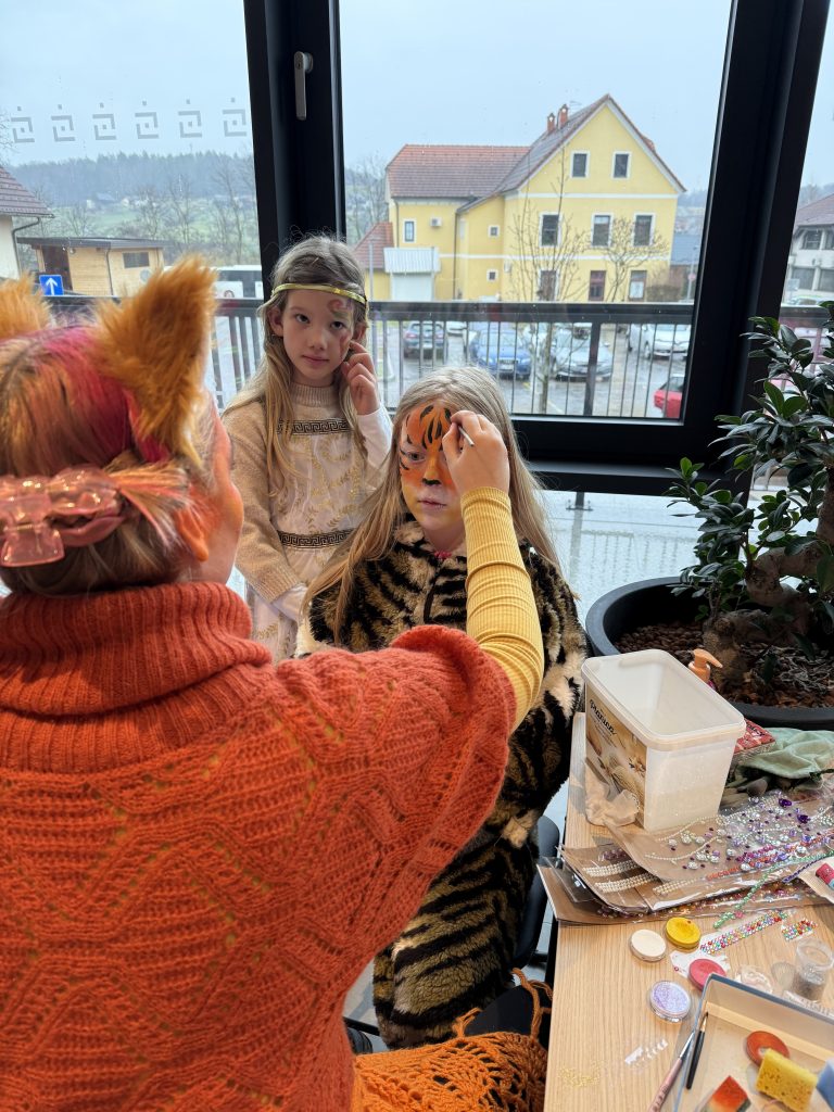 Poseben kotiček ustvarjalnosti je predstavljala poslikava obrazov, kjer je Svetlani Conti Padao pomagala prostovoljka Maša. Spretni umetnici sta maškaram z barvami na obraze pričarali prave male umetnine – nežne metuljčke, prikupne muce, pogumne tigre in številne druge čarobne motive. Otroci so navdušeno čakali v vrsti in z žarečimi očmi občudovali svojo novo podobo.